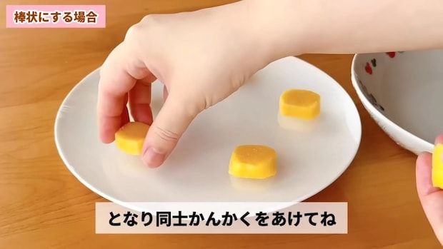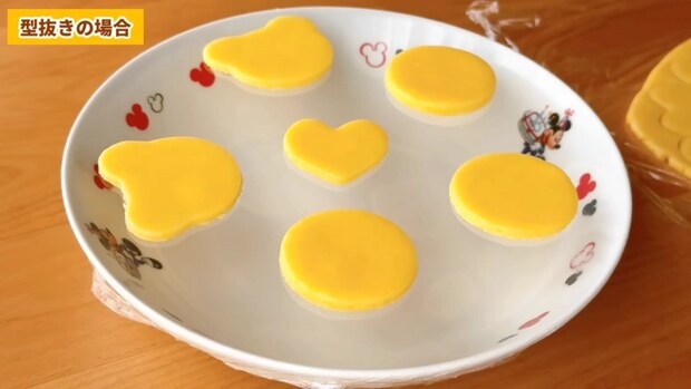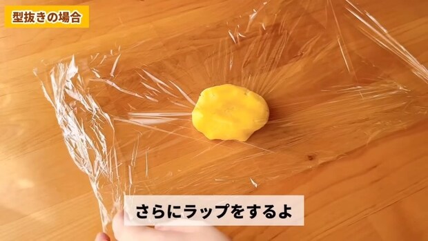 型抜きをしたら、ラップの下に手を入れてやさしく外しましょう。