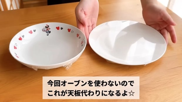 ラップをお皿にピンと張ることで、天板やクッキングシートの代わりになります。