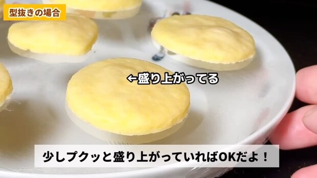 型抜きの場合は、表面が乾いていてプクッと盛り上がっていれば焼けた合図です。