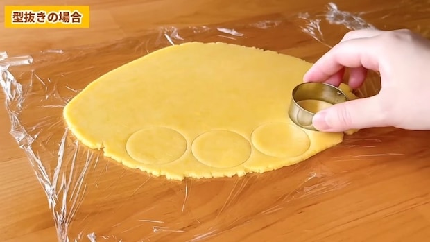 生地の上のラップをはがし、抜き型を使って生地を抜きましょう。