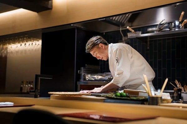 横浜関内の日本料理店「美食S」では、料理長の佐々塚雅也氏が繊細に仕立てる渾身の一皿と、オーナーの佐藤宏憲氏が厳選したワインが織りなす、五感で味わう至福の時間を提供する。