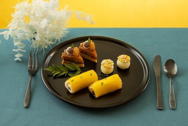 ミドルティアの「Japanese」には、「和」をモチーフにした3種のスイーツを用意。みかんやゆず、あんこといった馴染みある素材を繊細にアレンジし、冬の装いにふさわしい上品でぬくもりある味わいに仕上げた。