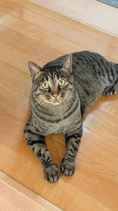 最近我が家に新しく仲間入りした、たまちゃんそっくりなキジ猫メルさん。