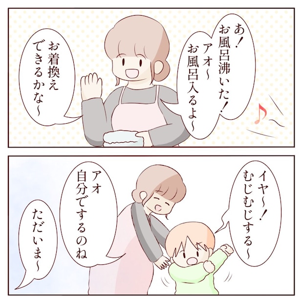 アオ君をお風呂にいれようとしているタイミングで、リク君が帰ってきました。