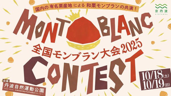 10月18日(土)・19日(日)、京都府の丹波自然運動公園 こどもの広場 特設会場で開催されるのは、今年で3回目を迎える「全国モンブラン大会2025」。全国6市町から集まる趣向を凝らしたモンブランが集結する。