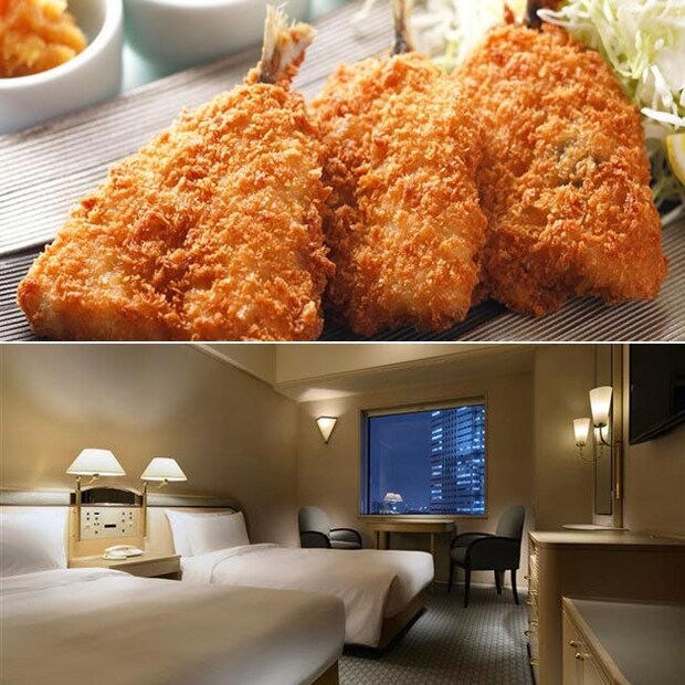 上/サクふわのアジフライ。自家製の窯で焼き上げるパンやシェフが目の前で作るオムレツなど定番人気メニューも 下/スタンダードツインのお部屋