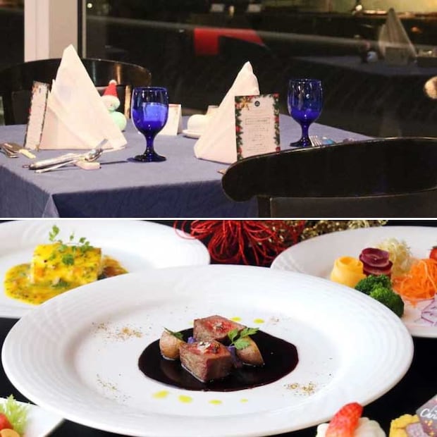 クリスマスシーズンには、特別な夜にふさわしいコース料理を用意。12月24日・25日の2日間限定で、ビュッフェコーナーにシャンパンのフリーフローが登場し、グラス片手に華やかなクリスマスムードを存分に楽しめる。