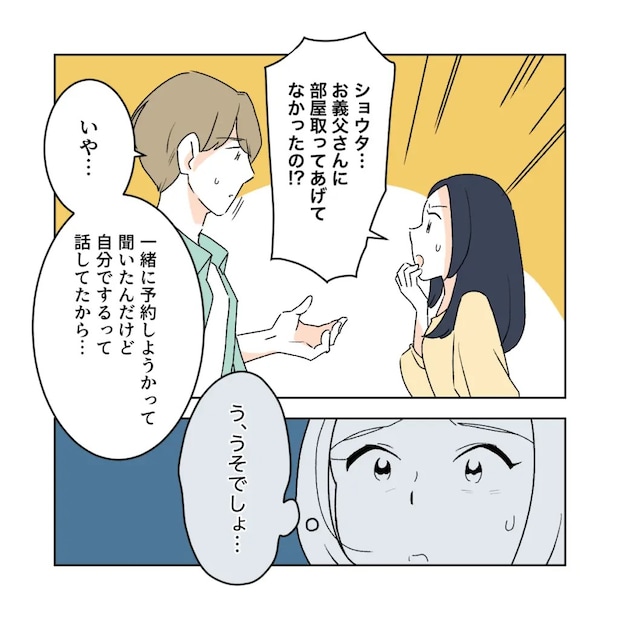 てっきり航空券と一緒にホテルもショウタが取ってあげているとばかり思っていた私は「ショウタ・・お義父さんに部屋取ってあげてなかったの!?」と聞くと、「いや・・一緒に予約しようかって聞いたんだけど、自分でするって話してたから・・」とショウタも困った様子で、私は「う、うそでしょ・・」と驚きました。