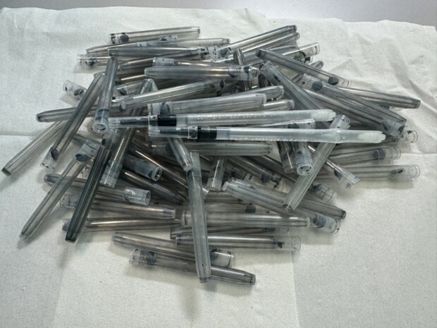 写真は、2021年7月に初学から勉強を始めてこれまでに手書きで答案を作成した時に使ったペンのインクです。82本ありました。