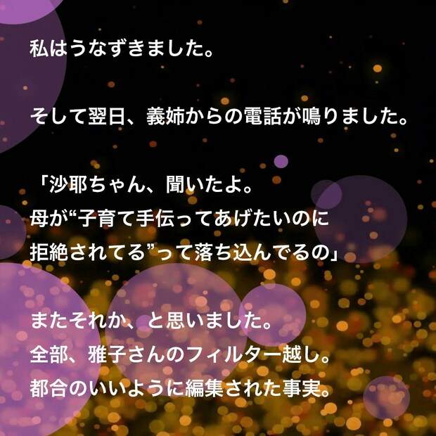 とはいえ、どんな背景があったとしても、他人を支配していい理由にはなりません。沙耶さんはあらためて、「共感すること」と「関係を持つこと」は別だと心に区切りをつけました。