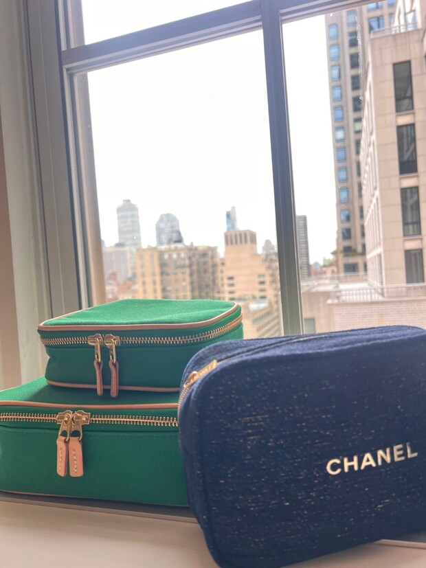 マイランと、スタイリスト風間ゆみえちゃんがコラボしたレスポートサックを愛用中。あと、写真にはないですが、佐田(真由美)さんに教えてもらったサプリの『AG1』は、最近の旅のマストアイテム。腸活に最適です!