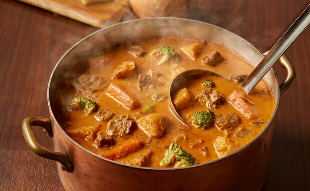 スープストックトーキョーは、2025年11月24日~12月26日の間、冬一番の人気スープ「温野菜とチーズのブラウンシチュー」と、冬季限定「オマール海老ソースと帆立のケイジャン風フリカッセ」を、Soup Stock Tokyo外食店舗で販売する。