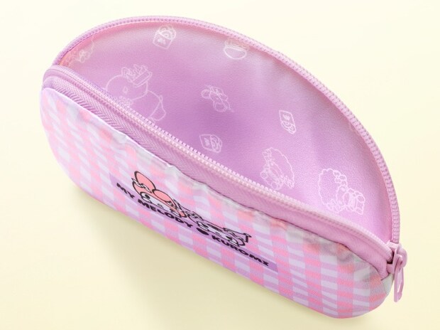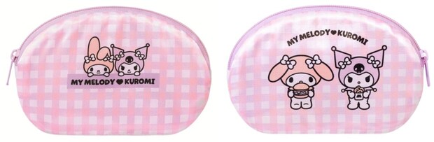 触り心地がなめらかなサテン生地を使ったコンパクトなポーチ。内側の生地には、マイメロディ&クロミの“おともだち”が描かれている。ポーチの大きさは、約:横16.5×縦10.5cm。