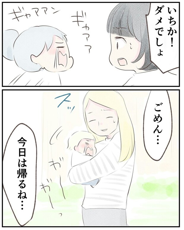 小野さん親子がマンション内の公園を訪れると、いちかちゃんと同い年の子どもを連れた平田さんと相川さんと出会い仲良くなります。その後も公園で交流を楽しんでいたのですが、相川さんのA太君といちかちゃんが度々ケンカをしてしまうのでした。