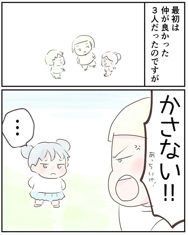 マンション内の公園に訪れるようになった小野さんといちかちゃん。最初は仲良く遊んでいた3人でも、ケンカになってしまいます。言葉足らずの2人はすぐにぶつかってしまいます。