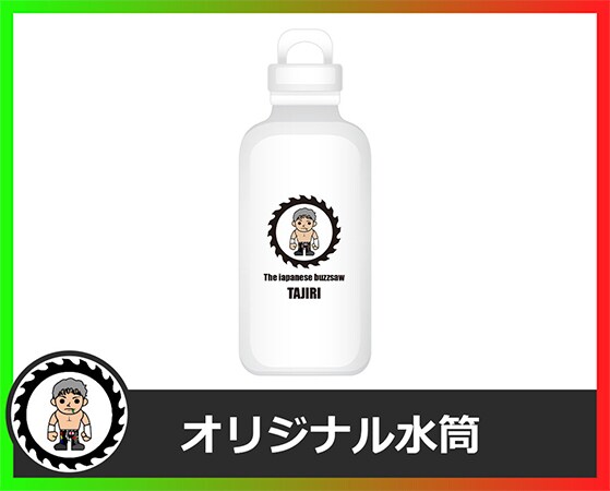 リターンの一つが「オリジナル水筒」。ファンの声から生まれた新グッズで、TAJIRI選手のイラストロゴをあしらったシンプルなデザインが特徴。スポーツ、お出かけ、オフィスなどで使える万能ボトルになっている。