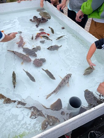 「海の体験ゾーン」では、親子で「タッチングプール」や渡り船クルーズなどを楽しめる。
