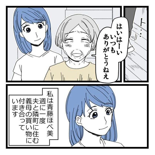 車で買い出しをするためですが、優しい義母との買い物はほぺ美さんにとっても楽しい時間のようです。そんなある日、義母からお金が減っている気がするという相談を受け…?