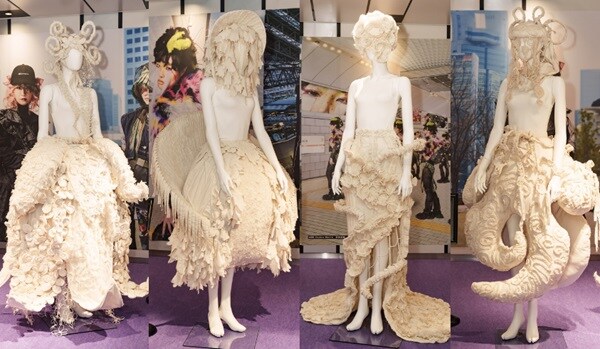 作品展示では、スーパーデザイナー学科1年生の「デザインスカート」を見ることができる。