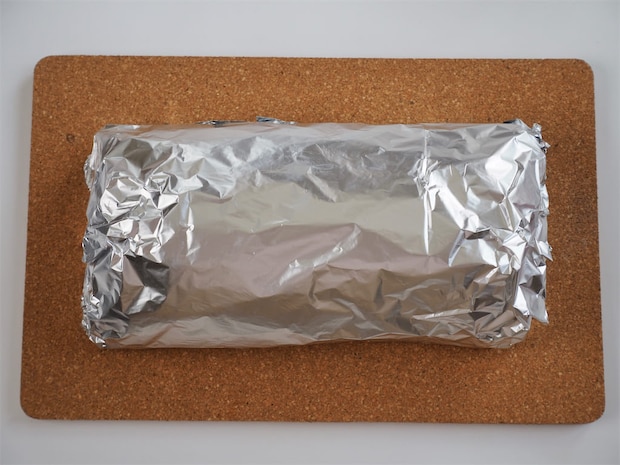 6. アルミホイルで全体を包み、さらにもう1枚のアルミホイルで上から全体を包む。