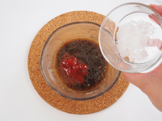8. アルミホイルに溜まった肉汁と、[B]を合わせてソースを作る。