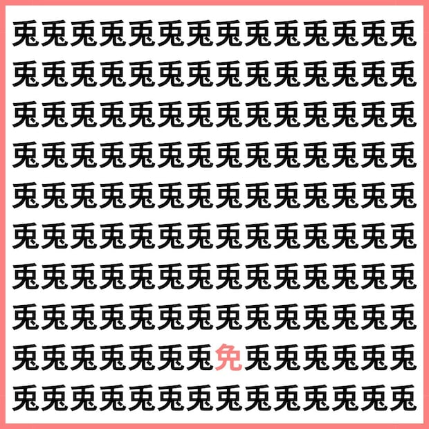 たくさんの「兎」の中に、1文字だけ違う漢字が混ざっています。