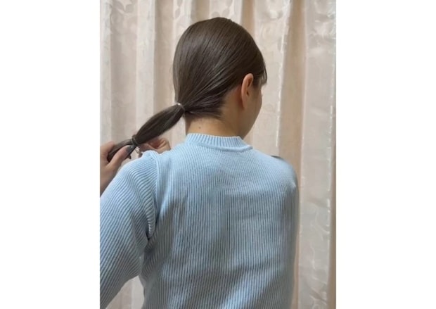 少し低め、耳下の位置くらいでキュッとひとつ結びします。