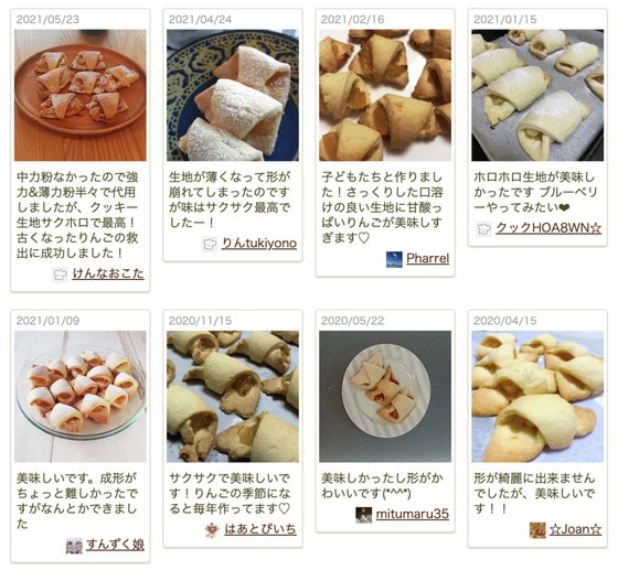 レシピに届いたつくれぽ(作りましたフォトレポートのこと)では、「クッキー生地サクホロで最高!」「りんごの季節になると毎年作ってます」などの声が。何度も作りたくなるおいしさなのですね。