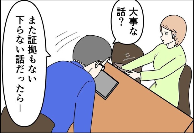 星野の協力で庁用車にGPSを仕掛けたところ、邦夫の行き先はホテル街で、完全にクロだと確信した佳奈さん。2か月後、邦夫と話をすることにします。