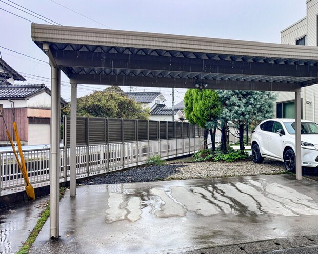 駐車場は、白い建物の前と、こちらのスペースに停められます。