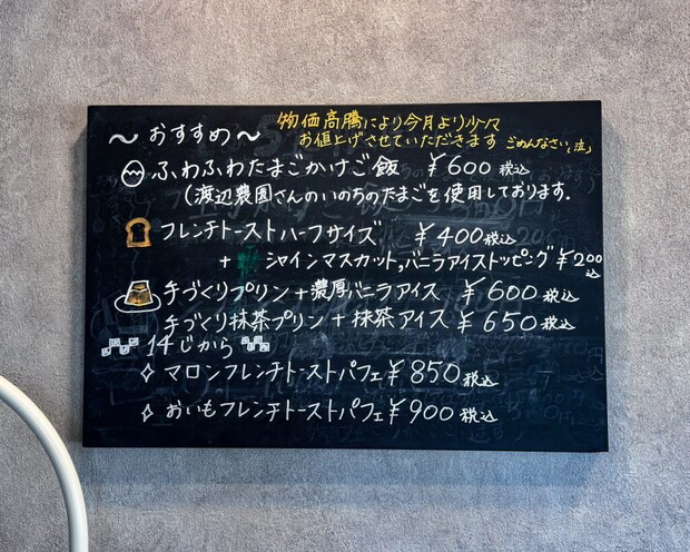 看板メニューは、店主さん自慢の「フレンチトースト」。