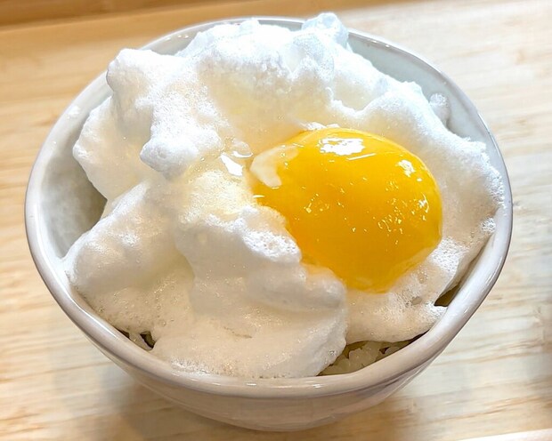 雲のようにふわっふわのメレンゲが、ご飯の上にドドンと乗った「進化系TKG」。
