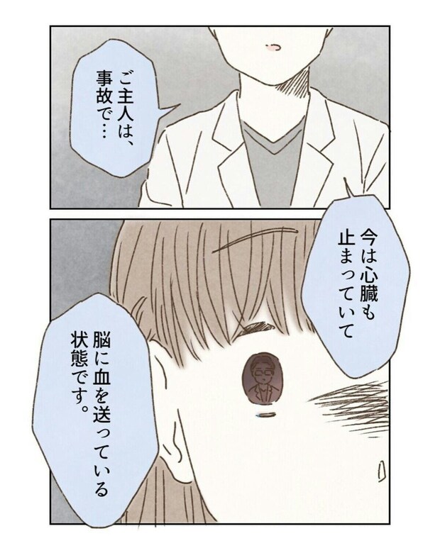 レスキュー隊からの電話を受け、病院へ着いた主人公。夫の容体は病院で聞かされます。告げられた内容は、想像を絶するものでした。