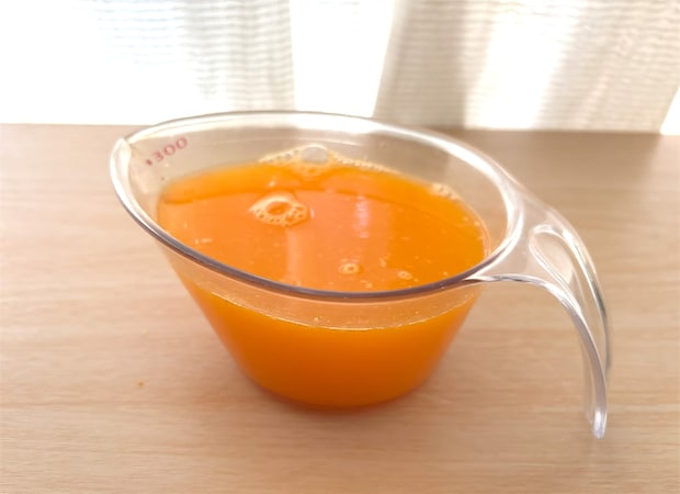 今回使ったみかんは、かなり大きめサイズでしたので、3個で下の画像のように240mlのみかん果汁が取れました。