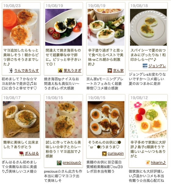 つくれぽ(つくりましたフォトレポートのこと)には、「からしの辛さの後からカレーの旨みと香りが追いかけてくる…美味」「またまたゆで卵に革命がおきたー」と大好評。お弁当はもちろん、おつまみにも大活躍しているつくれぽが集まっていますよ。