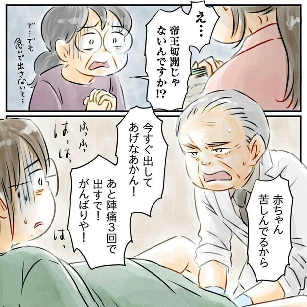 そんな中、先生が下した判断は、陣痛3回で赤ちゃんを出してあげることでした。