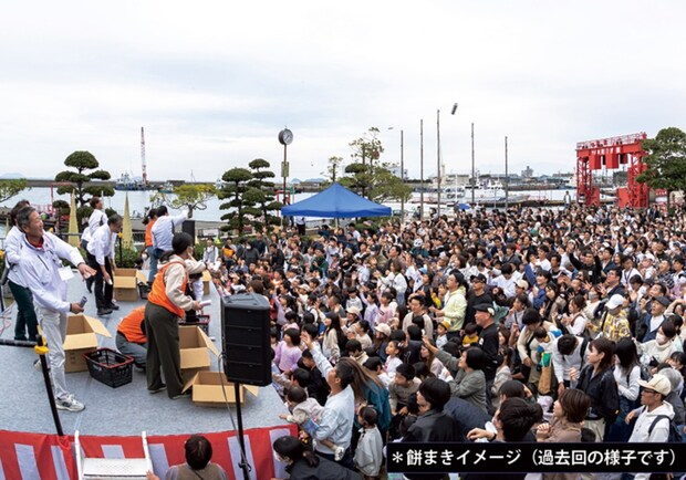 なかでも注目は、3年にちなんだ3000個のお餅とタオル美術館から提供される500個のタオルをまく「大餅まき・タオルまき大会」。
