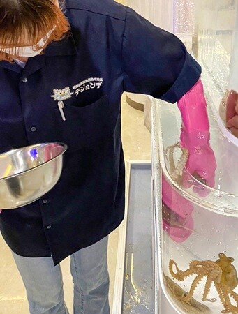 「サンナッチ掴み取り体験」はグネグネと動く新鮮なタコをそのまま食べられる体験型料理として、これまで鮮Senサンナッチ館 4号店限定のサービスだった。