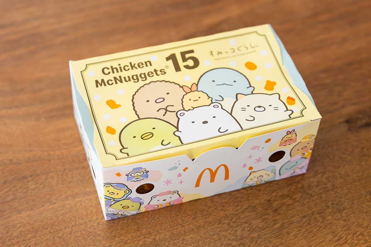 「すみっコぐらし」のキャラクターが描かれた可愛らしいボックスの中に、「チキンマックナゲット」が15ピースも入っています。この量にテンションが上がってしまいますね。