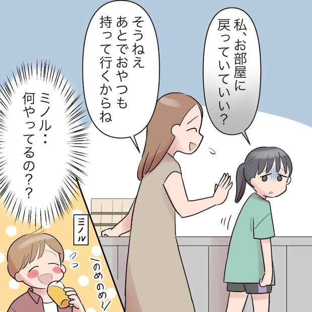 その後、「私、お部屋に戻っていていい?」ユズキにそう言われ、「そうねえ、あとでおやつも持って行くからね」となだめながら、「ミノル・・何やってるの??」とただただ飲んでいるだけのミノルを恨めしく思いました。