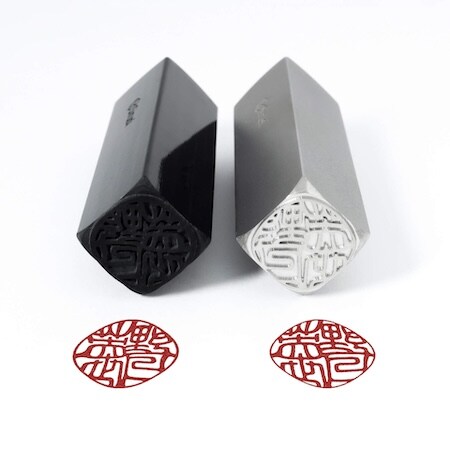 その中で寄せられた「菱形の印鑑を作りたい」という声をきっかけに、新たなデザインフレームの開発が進められ、丸から菱形へと変化していく二つの新しい印モルフィーが完成。計算された調和美と、流動的なマーブリング表現という異なる二つのデザイン価値が印影に取り入れられている。