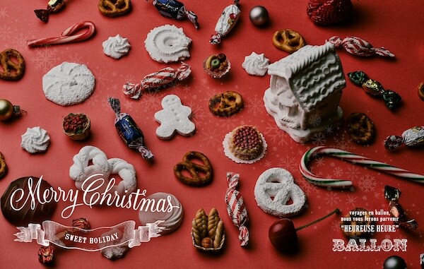 BALLONが届ける今年のホリデーコレクションのテーマは「SWEET HOLIDAY」。お菓子の家「ヘクセンハウス」やジンジャーマンクッキーなどのクッキーボックスなど、甘いおとぎ話のようなクリスマスコレクションとなっている。