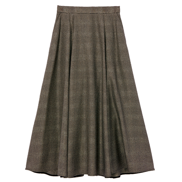 スカートは布地の面積が多い分、素材が重要。上質な生地ならではのツヤや落ち感が欲しいですよね。ここは大人として、少し高価でも質のよいものを買いましょう。丈はマキシ丈まではいかない長めで、タックの入ったフレアタイプが特に腰まわりをスッキリとバランスよく見せてくれます