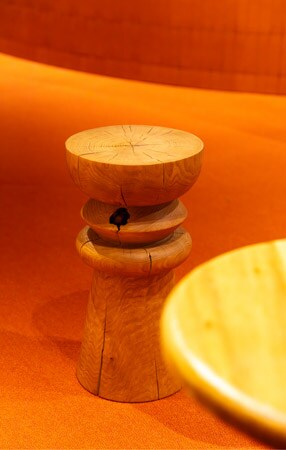愛知県常滑市で採掘される良質な赤土からインスピレーションを受け、円形のメインカウンターや座席の背面などに赤土のレンガを使用している。