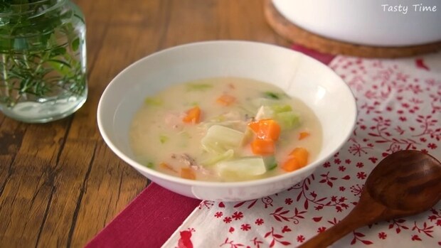 TastyTimeさんは、ロティサリーチキンをそのまま味わった翌日、鶏がらを煮込んでスープに。旨味たっぷりの鶏がらスープは、クリームスープやカレーなどに活用できます。