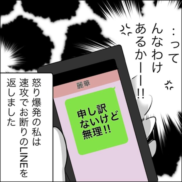 他のママ友に状況を相談して、どれだけ非常識なお願いをされていたか再確認した綾子さん。こういうとき、正論を言ってくれるママ友がいると安心しますよね。ママ友トラブルに巻き込まれたときは他のママ友に相談をすることもよい方法ですね。