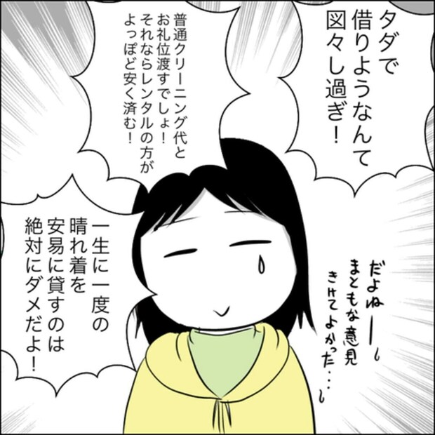 人から着物を借りるというのは、麗華なりの節約だったようですが、それは綾子さんにとって迷惑でしかありません。人とモノの貸し借りをする、ということはそれなりのリスクが伴うこと忘れてはなりません。