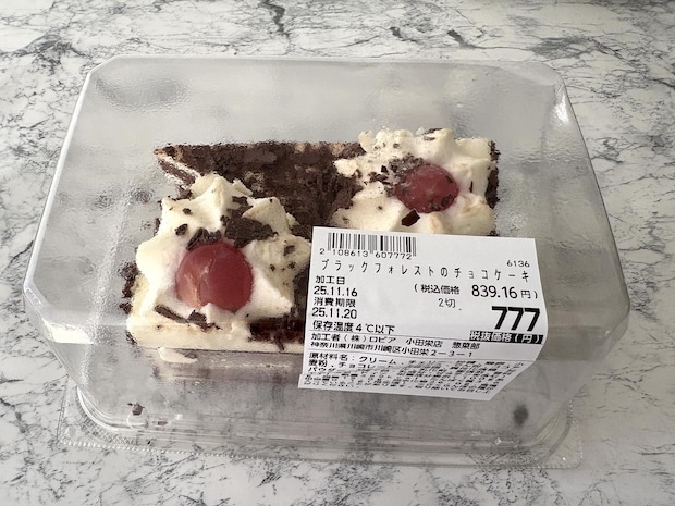 ロピアのブラックフォレストのチョコケーキは、一見ふつうのチョコケーキかと思いきや、実は甘酸っぱいチェリーの風味、キルシュの風味で大人味に仕上がったクセになる1品。