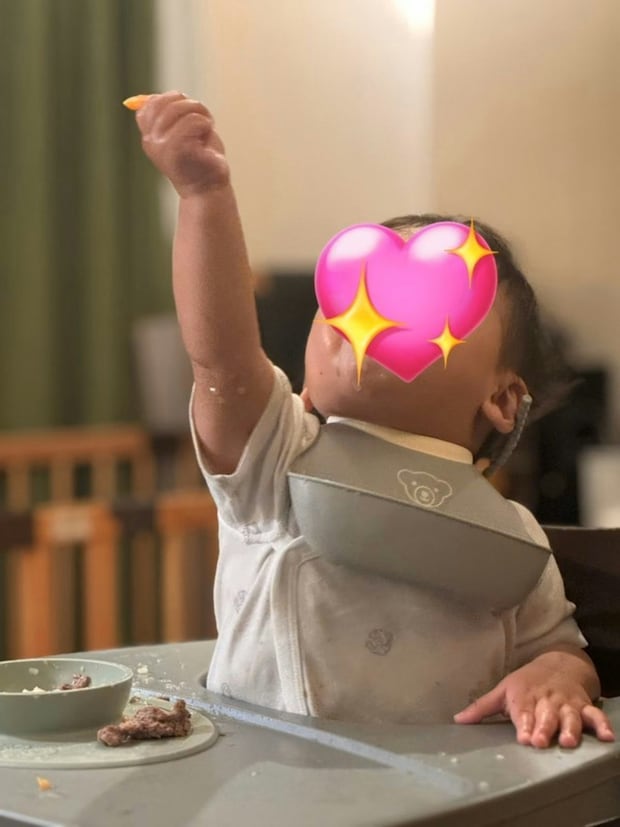 ごはんの時間がただの食事ではなく、「喜びの時間」であることが伝わってくるような写真。喜びを全身で表す赤ちゃんに、見ている私たちも心がほっこりしますね。