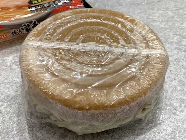 本品の大きな特徴は水なしで調理できる点。麺の底にはスープが冷凍で固められています。